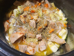 Залили свинину белым вином, добавили соль и специи и включили автоматическую программу «Тушение», которая работает 1 час.