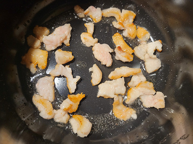 Шкварки обжарились еще до окончания работы программы, и мы бросили к ним мясо. За 18 минут в общей сложности мы получили вот такой результат (фото справа).