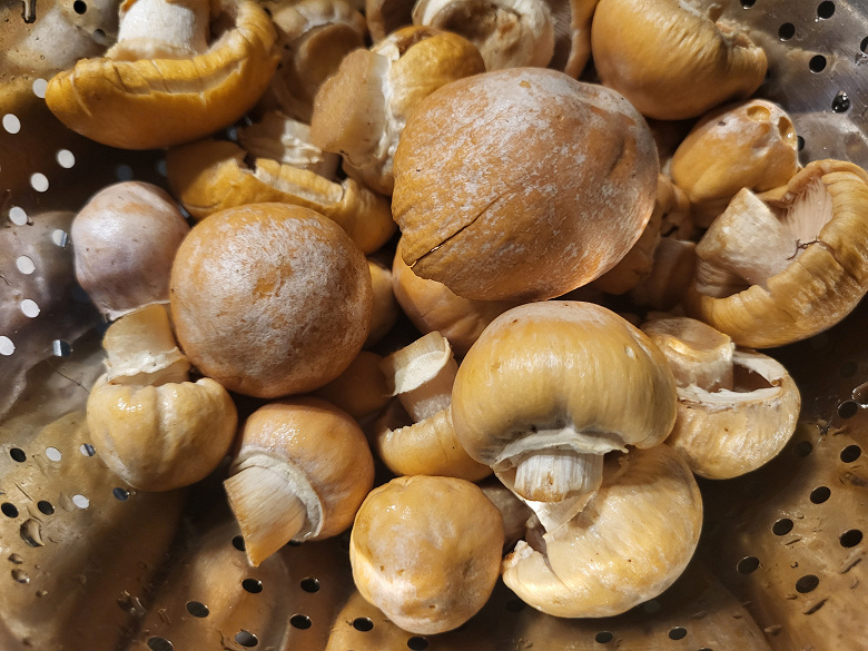 Подруга поделилась с нами колпаками. Известно, что этот гриб у нас не любят и считают поганкой, но мы в очередной раз рискнули попробовать и гриб, и автоматическую программу «Жарка» у мультиварки. И поскольку мы всё еще пишем этот обзор, а грибы уже давно съедены, понятно, что общественное мнение в очередной раз оказалось повержено.