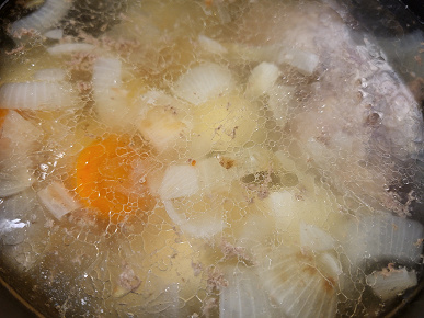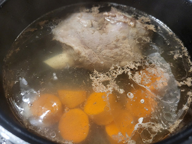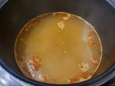 Программа «Томление» рассчитана на три часа работы. Через два часа мы получили прозрачный красивый бульон и стали постепенно закидывать овощи — морковку, картошку и жареный лук.
