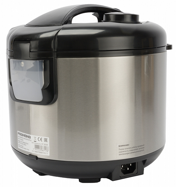 Внутри коробки мультиварка надежно зафиксирована пенопластовыми вставками, предотвращающими смещение и защищающими корпус от механических повреждений при перевозке. Для удобства переноски коробка снабжена встроенной ручкой.