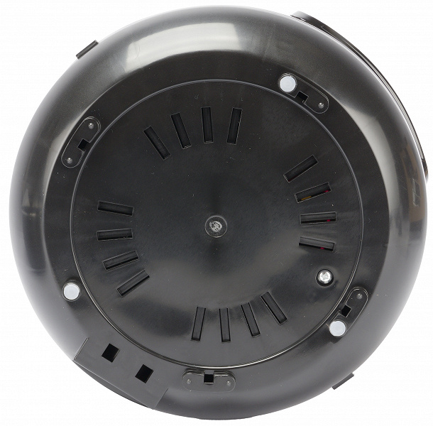 Снизу находятся пластиковые ножки и вентиляционные отверстия системы охлаждения.