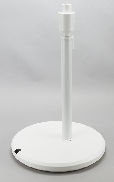 Основание (подставка) представляет собой тяжелый металлический «блин» в пластиковом корпусе. На верхней части мы видим разъем для установки центральной штанги. Спереди — инфракрасный приемник, который будет принимать сигнал с пульта дистанционного управления.