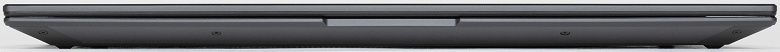 На днище, кроме продолговатых и довольно жестких ножек, ближе к задней кромке имеется область со множеством узких вентиляционных прорезей, через них происходит забор воздуха для охлаждения компонентов, поэтому ставить ноутбук на мягкую поверхность не следует. На боковых скосах от середины к задней части идут ряды более крупных отверстий, через которые система вентиляции выбрасывает нагретый воздух, а ближе к передней кромке расположены решетки стереодинамиков.