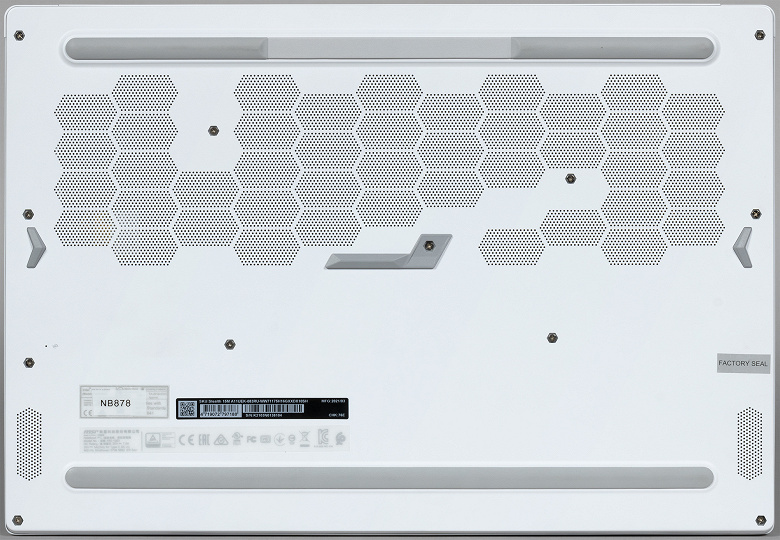 На верхней плоскости корпуса за клавиатурой и в задней части днища имеются области с мелкими круглыми вентиляционными отверстиями, оформленные в виде набора вытянутых шестигранников. Есть также группы прямоугольных отверстий по бокам и сзади (боковые при беглом взгляде можно принять за отверстия разъемов USB Type-A, удивившись их количеству).