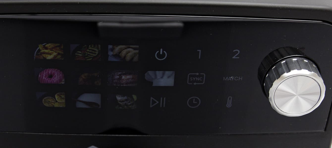 Также стоит упомянуть, что аэрофритюрница снабжена функциями Match (дублирование) и Sync (синхронизация). Функция Sync позволяет завершить приготовление в одно и то же время в случае, когда для продуктов в разных корзинах требуется разное время приготовления. После настройки программ следует просто нажать кнопку Sync — и они будут запущены таким образом, чтобы приготовление закончилось одновременно.