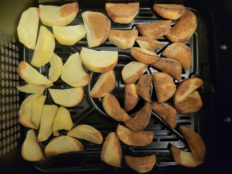 После завершения программы картофель заметно подрумянился с одной стороны корзины, тогда как с другой остался менее румяным. Следует отметить, что в процессе приготовления мы не перемешали его в середине цикла, поскольку отвлеклись, что, вероятно, и повлияло на равномерность поджаривания.