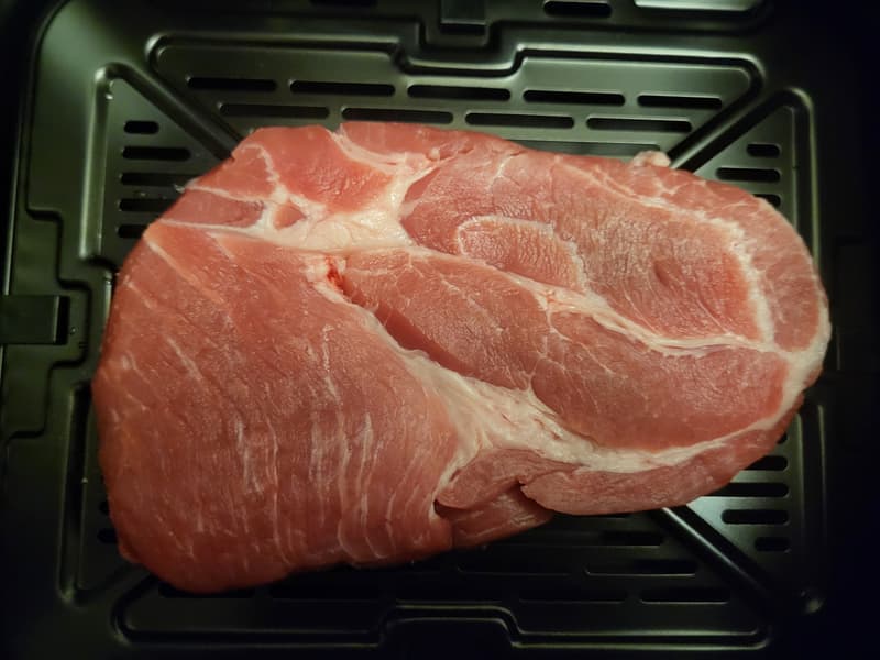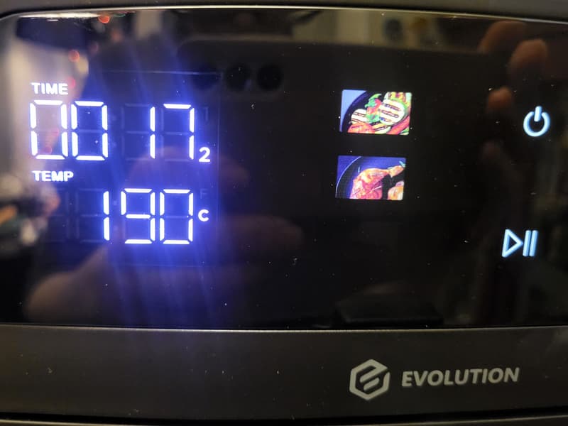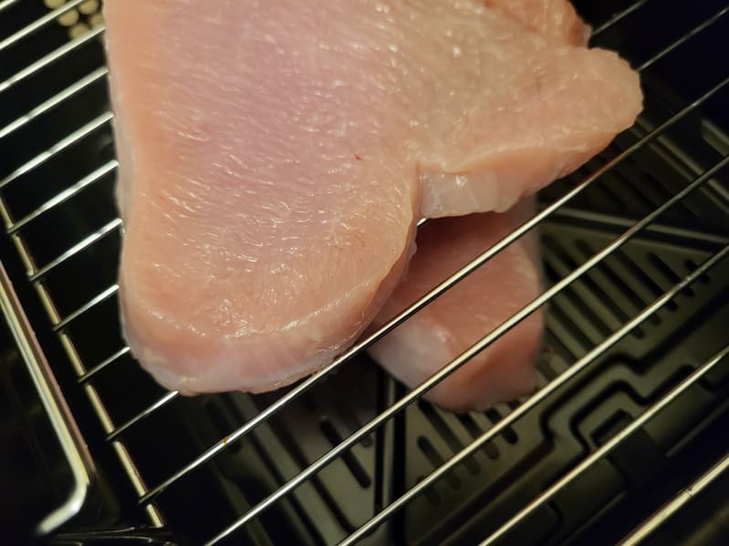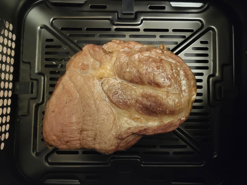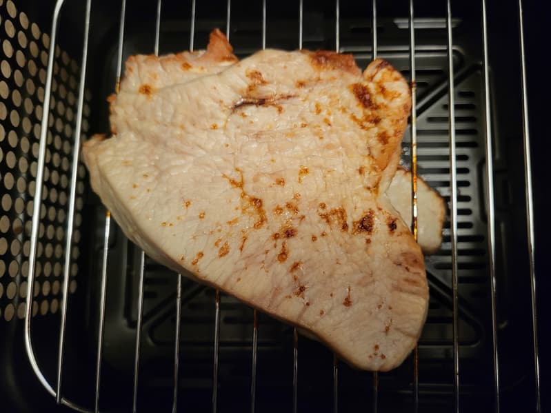 Мясо же показалось нам показалось недостаточно подрумяненным с обеих сторон, поэтому продукты были возвращены в аэрофритюрницу еще на 10 минут для дополнительной обработки.