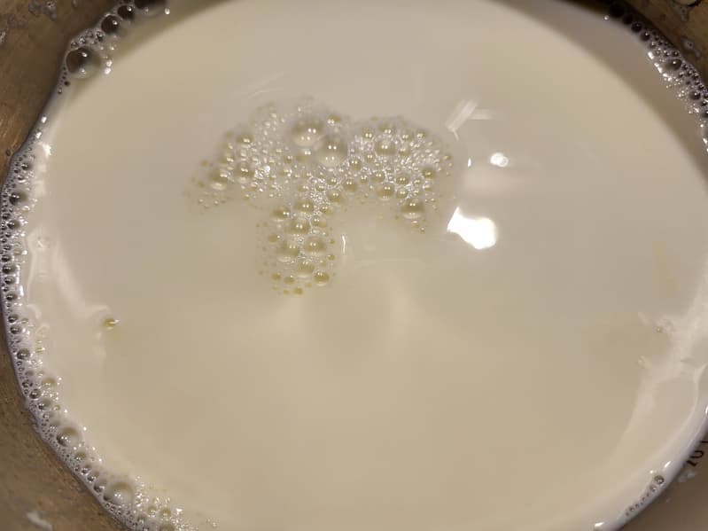 Мы всё же решили опробовать режим «Ферментация» для приготовления йогурта. Не уверены, правда, что это можно назвать тестированием режима, поскольку температуру приготовления мы изменили, выставив 40 °C. Иначе из подготовленной смеси молока с йогуртом получили бы не йогурт и даже не скисшее молоко, а «молочную смесь с денатурированными белками и кисловатым привкусом, напоминающую подгоревшую простоквашу» (тут мы воспользовались ИИ, чтобы придумать название для этого гипотетического продукта).