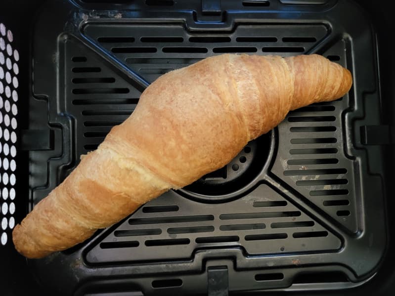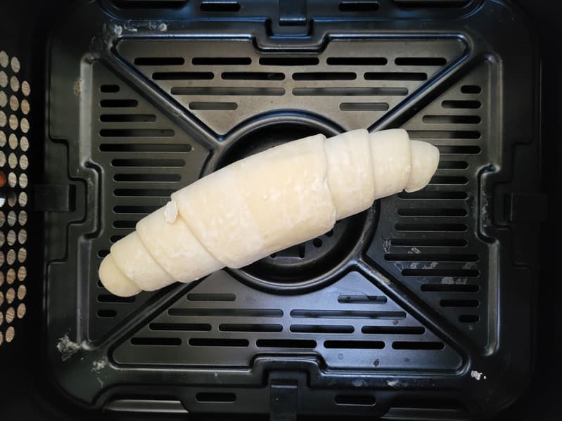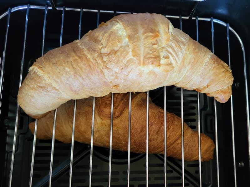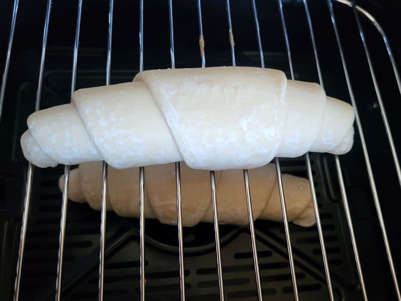 Сами круассаны мы разморозили в течение примерно часа и выложили в корзины. При этом мы решили, что в одной корзине будет готовиться один круассан, а в другой — два, один над другим.