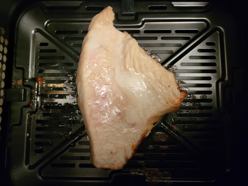 Для следующего теста мы взяли замороженного морского окуня. Понятно, что прежде чем отправлять его в аэрофритюрницу, мы его разморозили.
