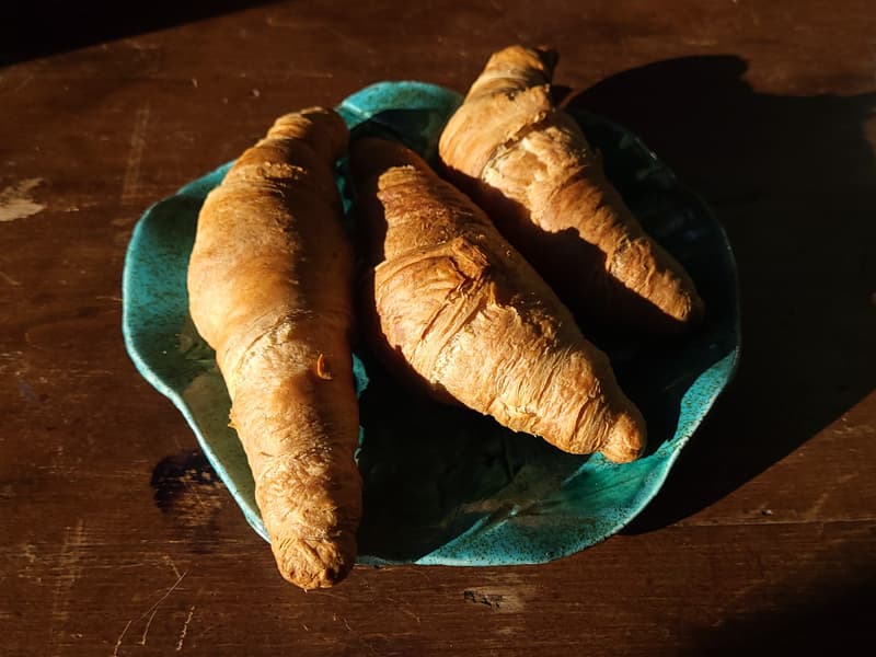 Но в целом круассаны нам (и аэрофритюрнице) удались, хоть и вышли немного кривоватыми.