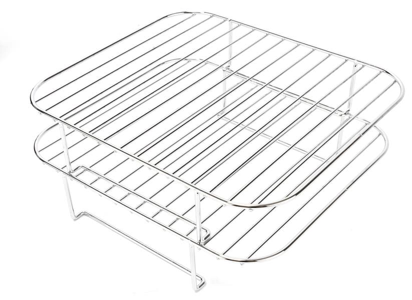 Помимо стандартных решеток, в комплекте предусмотрены дополнительные. Они позволяют организовать двухуровневое приготовление, что существенно расширяет возможности аэрофритюрницы и увеличивает объем одновременно готовящихся блюд.
