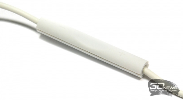 Оба кабеля из комплекта поставки вызывают самые приятные впечатления, даже несмотря на то, что они легко спутываются. Они максимально мягкие, имеют прочное прорезиненное покрытие и минимально возможные габариты прямых разъёмов для подключения к аудиоаппаратуре. Кабели отличаются друг от друга лишь тем, что один из них имеет пульт управления громкостью и проигрываемыми композициями, совместимый с большинством современных мобильных продуктов от Apple.