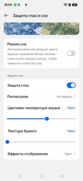 Также в настройках можно уменьшить интенсивность синей компоненты.