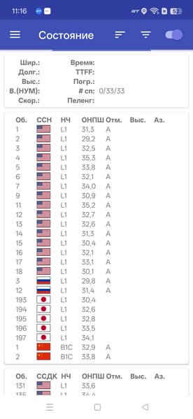 - GPS, Galileo, Глонасс, QZSS, BDS
