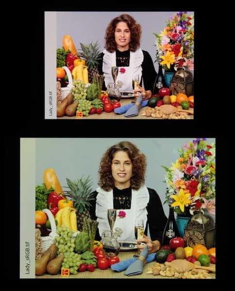 Отметим, что на экранах с уширенным цветовым охватом (без соответствующей коррекции) цвета́ обычных изображений, оптимизированных для устройств sRGB, выглядят неестественно насыщенными. Отсюда и рекомендация: в большинстве случаев смотреть кино, фотографии и все естественное лучше при выборе профиля Естественный.