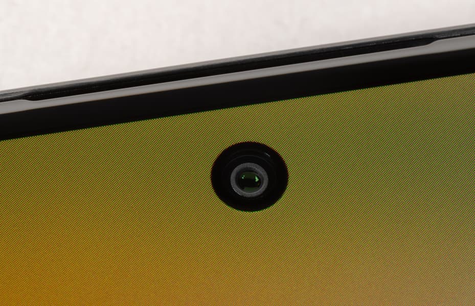 Переднее стекло экрана плоское, без загибов и бликующих краев. В верхней части проделано круглое отверстие в матрице для фронтальной камеры. Дополнительного датчика нет, камера одиночная.