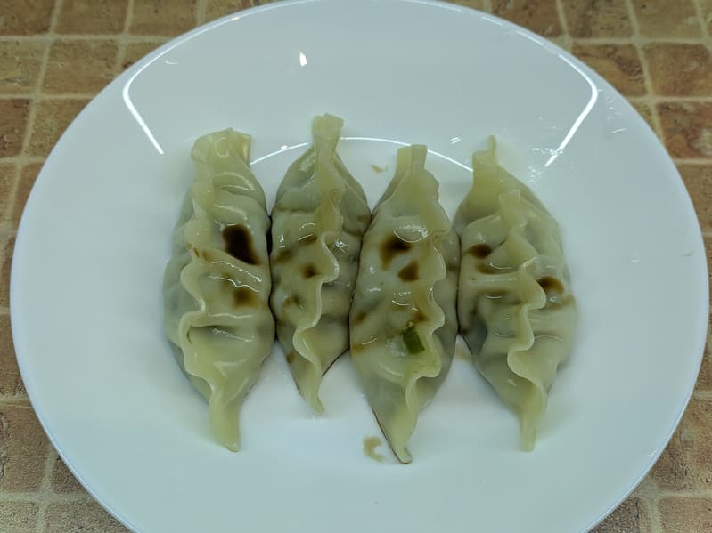 Гедза, как мы и ожидали, были полностью готовы. Осталось добавить немного соевого соуса.