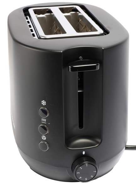 Тостер автоматически включается после нажатия на рычаг, опускающий тосты, при этом можно выбрать степень обжарки — от 1 до 7. Выбор не имеет фиксированных точек, поэтому мы без проблем можем установить любое промежуточное значение.