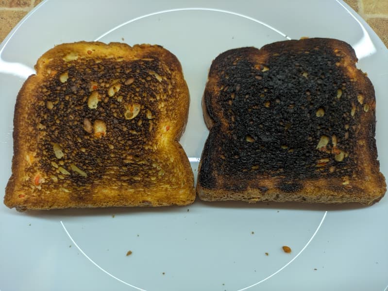 Вот, например, как выглядят сильно прожаренные тосты с одной стороны: