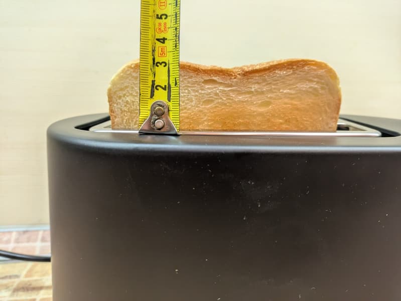 Разработчик сообщает нам, что тосты поднимаются на относительно большую высоту, что позволяет извлекать их без опасения случайно обжечься. В целом он прав: готовые тосты выступают за пределы корпуса на 2,5–3 см. Брать их вполне удобно.