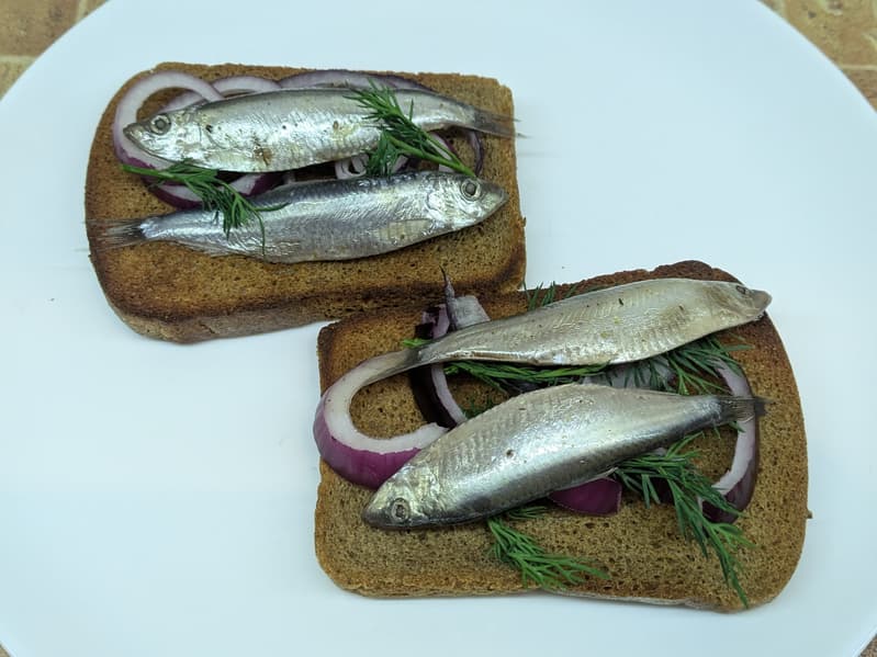 Классическое сочетание: соленая рыба, лук, зелень и черный хлеб.
