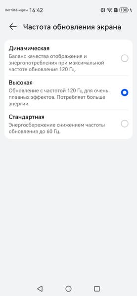 В настройках экрана можно включить режим с повышенной до 120 Гц частотой обновления: