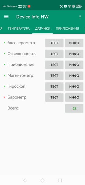 - Датчики приближения и освещения, магнитного поля, акселерометр, гироскоп