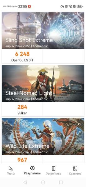 Всё это — максимально возможные цифры, полученные в «идеальных» условиях, в том числе без установленных SIM-карт. Любые изменения в сценарии эксплуатации, скорее всего, приведут к ухудшению результатов.