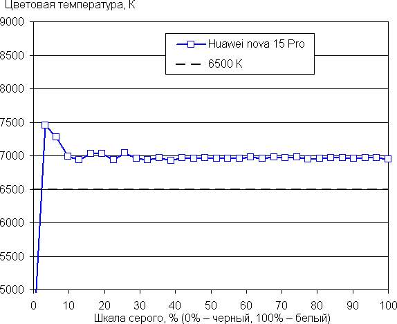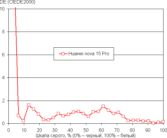 Напомним, что в случае OLED-экранов яркость фрагментов изображения может динамично меняться в соответствии с характером выводимого изображения. В итоге полученная зависимость яркости от оттенка (гамма-кривая) может не соответствовать гамма-кривой статичного изображения, так как измерения проводились при последовательном выводе оттенков серого почти на весь экран.