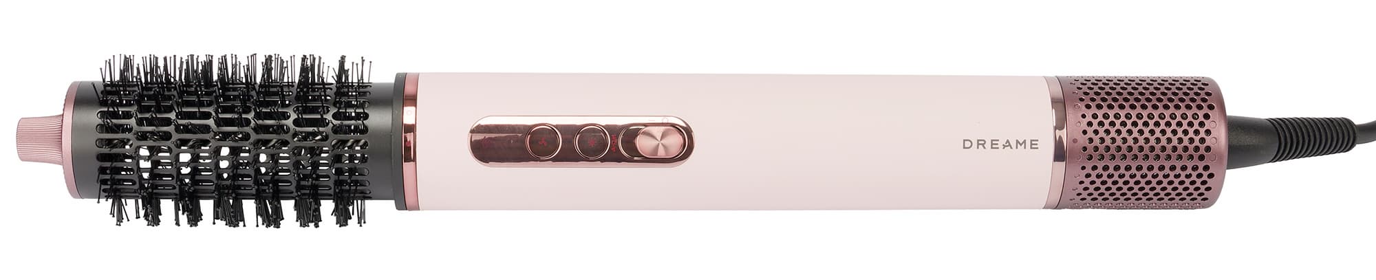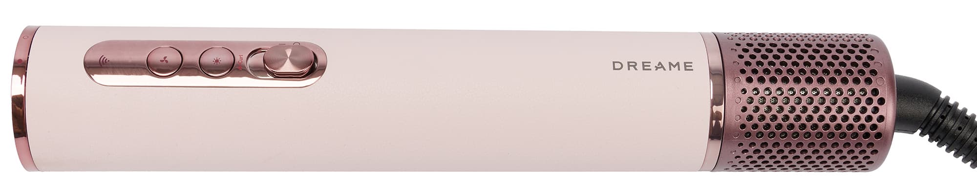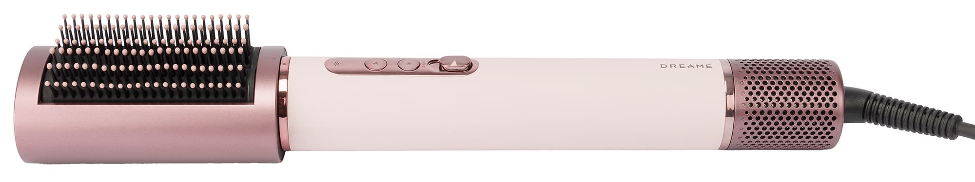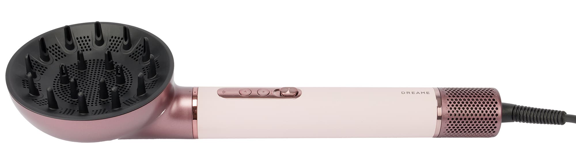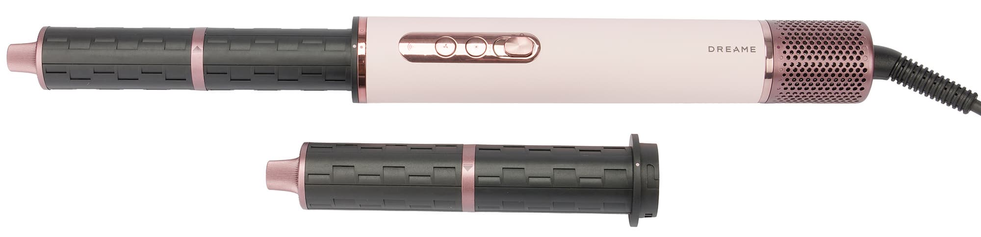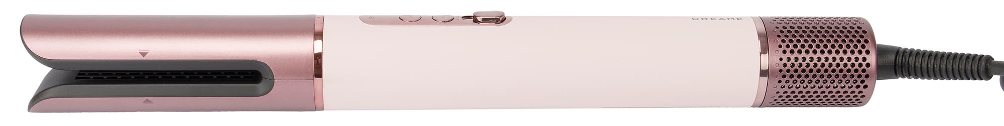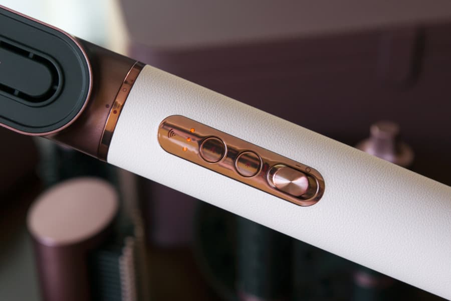 Dreame AirStyle Pro AMS01A управляется двумя кнопками и сдвижным переключателем. Верхняя кнопка устанавливает одну из трех скоростей потока воздуха, а нижняя переключает температуру. У стайлера три режима нагрева воздуха: холодный, теплый и горячий.