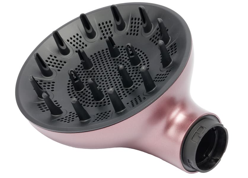 Чаша с перфорированным дном средней глубины, пальчики не очень длинные — чуть меньше 2,5 см. Отверстия в них выполнены в разные стороны, что должно обеспечить максимально равномерное распределение потока воздуха по копне волос.