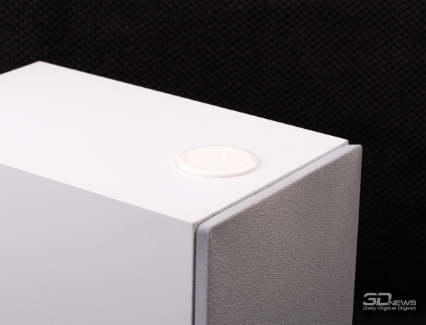 Защитные сеточки на сателлитах в первый раз было сложно снять, так как их крепления имели очень плотный ход. Но затем отверстия в передней части колонки расходились. Диффузоры окрашены в черный цвет, однако они смотрятся органично и на белых колонках. При этом внешний вид изменяется — пропадает акцент на минимализме и прямых линиях, поэтому защитные сеточки в ходе дальнейшего тестирования мы решили оставить на своих местах.