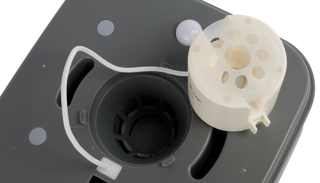 Моторный блок без труда снимается с резервуара для воды, и перед нами предстает вытянутый пластиковый тубус с мембраной и фильтром.