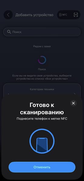 Мы произвели подключение с помощью NFC — благодаря такому решению процесс существенно упрощается. Все, что нужно — включить NFC-модуль на смартфоне (у некоторых моделей он активен по умолчанию) и приложить его к значку NFC на корпусе устройства. После этого приложение автоматически откроется сразу на окне ввода пароля от роутера. Таким образом можно пропустить первоначальные шаги (выбор или поиск устройства), а весь процесс настройки будет завершен буквально за считанные секунды (самое долгое тут — ввод пароля).