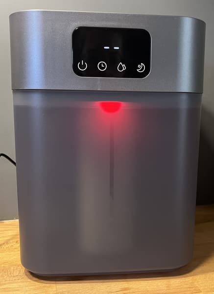 Прибор имеет сенсорную панель управления, резервуар на 5,5 л, керамический фильтр для очистки воды, три скорости подачи пара и режим ароматизации. Производитель обещает до 40 часов бесперебойной работы. Давайте проведем ряд тестирований и выясним, так ли это и окажется ли удобен в быту данный увлажнитель.