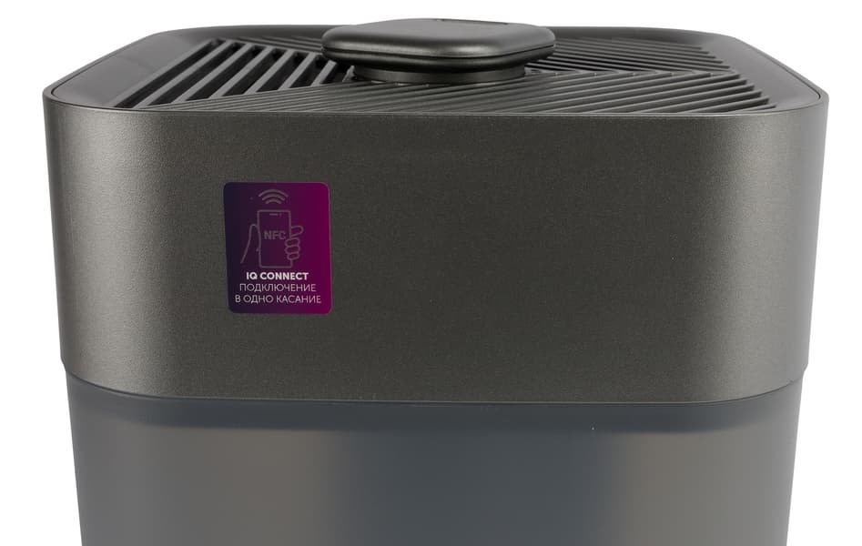Справа на корпусе моторного блока мы видим вспомогательную наклейку для NFC-подключения — прикладывание смартфона именно в этом месте позволит быстро подключить прибор в приложении Polaris IQ Home и начать им управлять дистанционно.