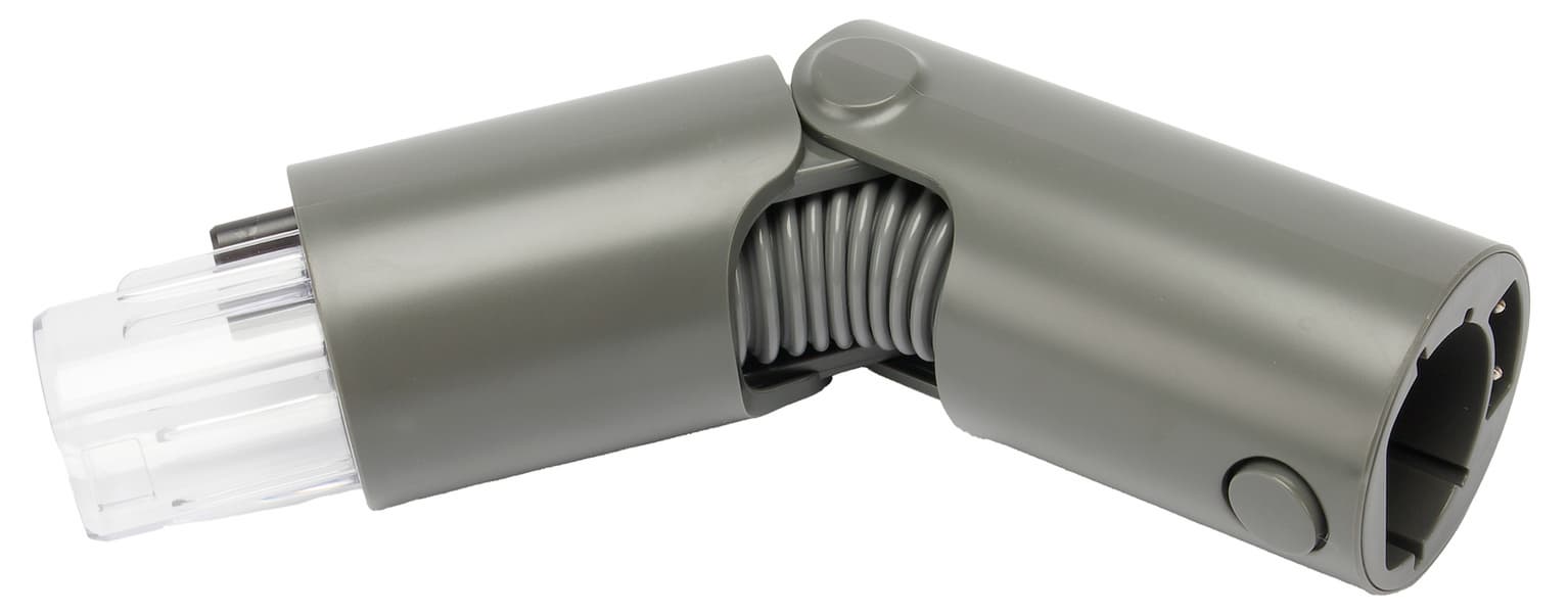 Для эффективной уборки под мебелью удлинительную трубку можно подключить к пылесосу через пластиковое колено, которое может изгибаться под углом до 90°. Возможность питания электронасадки при этом сохраняется.