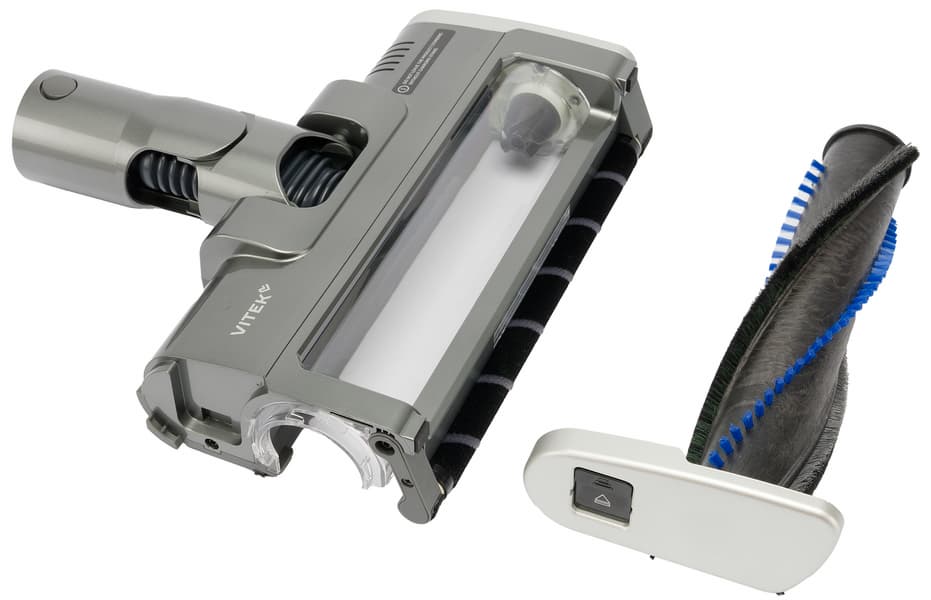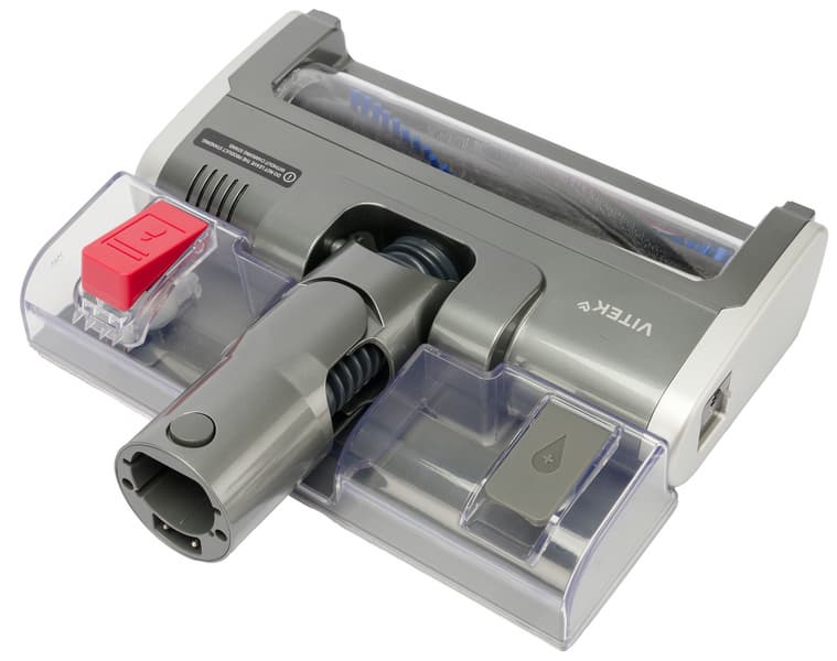В конфигурации для уборки пола Vitek VT-CLSAQUA Rapid эффективен и удобен. Основной вес устройства приходится на ролики половой щетки, гибкий шарнир насадки обеспечивает хорошую подвижность и помогает при уборке труднодоступных мест.
