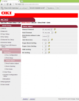 Подключение к ПК возможно двумя способами — напрямую и по сети. При кабельном подключении достаточно выбрать необходимые драйверы (отдельно доступны драйверы принтера, сканера и PC-факса). При сетевом подключении для начала требуется указать IP-адрес устройства либо же запустить запуск поиска. По сети можно не только печатать, но и сканировать или отправлять факсы, к тому же имеется доступ к веб-меню управления, которое в устройствах OKI изобилует разнообразными настройками. Тут можно не только изменять любые параметры печати, сканирования, копирования, работы с факсимильными сообщениями, но и управлять правами доступа, создавать профили пользователей и задавать все системные настройки. Отдельно стоит отметить возможность печати через окно браузера, правда, это касается только PDF-файлов. Также при помощи веб-панели можно настроить уведомления о работе устройства по электронной почте, причём для разных событий могут быть указаны различные адреса. Например, если закончилась бумага — сообщение отсылается секретарю, а если проблемы с системными функциями, то администратору. Вариантов событий чрезвычайно много, так что система уведомлений весьма гибкая.