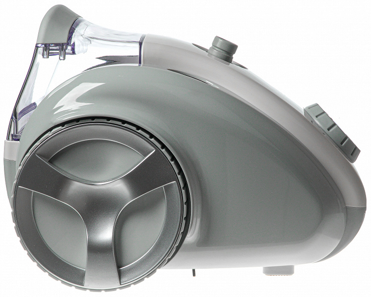 Корпус отпаривателя без закрепленных аксессуаров выглядит как небольшой пылесос без ручки. Корпус оснащен двумя большими колесами.