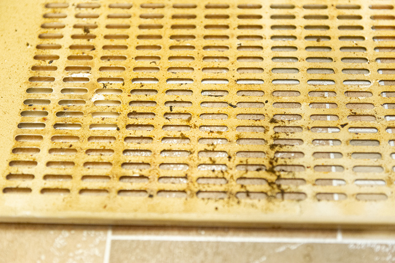 Грязные потеки были смыты душем, грязи не осталось, но небольшая липкость на металле все еще ощущалась. Тогда мы протерли решетку губкой с добавлением пары капель средства для мытья посуды и еще раз сполоснули водой — решетка засияла и стала выглядеть как новая.