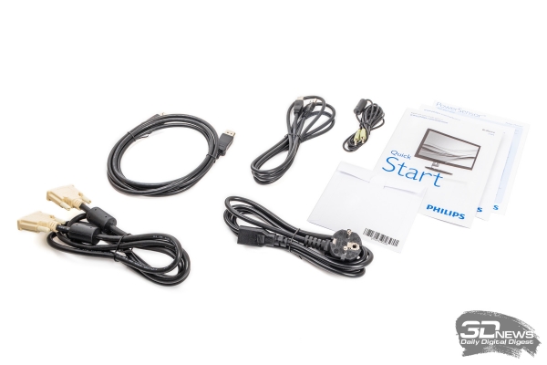 Кроме самого монитора, в коробке находятся следующие аксессуары:
