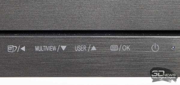 Управление монитора основано на сенсорном интерфейсе. В отличие от модели Philips 271P4Q, здесь все работает четко и быстро. Единственный минус — отсутствие подсветки, поскольку в условиях недостаточного освещения невозможно ориентироваться по подписям, а тактильно кнопки ничем не выделяются. На наш взгляд, производителям стоит уделить больше внимания этому вопросу, тем более что в наш век, когда светодиоды проникают даже область освещения улиц и огромных помещений, реализовать возможность настройки в темноте не представляет особого труда.