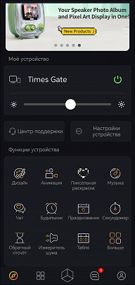 Результат творчества можно вывести на один из экранов или на все сразу. Надо заметить, что все элементы интерфейса и виджеты сделаны в присущем Divoom минималистичном «пиксельном» стиле. И это не баг, а фича — так задумано.