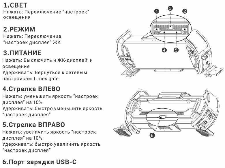 В комплект поставки входят сам Times Gate, кейс, кабель USB-A — USB-C для питания, руководство пользователя.
