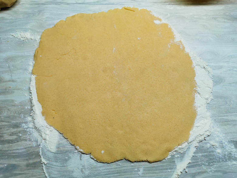 Для теста нам понадобилось 200 г сливочного масла, 70 г сахара, 500 г муки, 1 яйцо и 1 яичный желток.