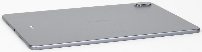 На верхней грани, рядом с блоком камеры и качелькой регулировки громкости, размещены два отверстия микрофона, что должно обеспечивать хороший прием звука при видеосвязи. Есть здесь и элемент, знакомый нам по модели MatePad 11,5″S: пластиковая вставка для антенны NearLink — модуля беспроводной связи по стандарту, предложенному Huawei на замену привычного Bluetooth (поддержка которого тут, разумеется, тоже есть).