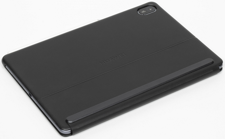 Чехол-клавиатура имеет некоторые отличия от того, что мы видели у предыдущих моделей с такой диагональю. Как и раньше, аксессуар состоит из двух частей: собственно клавиатурной части и обложки, закрывающей тыльную сторону планшета и позволяющей удобно его установить. Но часть, примыкающая к тыльной поверхности корпуса, теперь имеет «ушки» по углам и выступ под нижнюю грань — это дополнительно защищает планшет и более плотно его фиксирует.